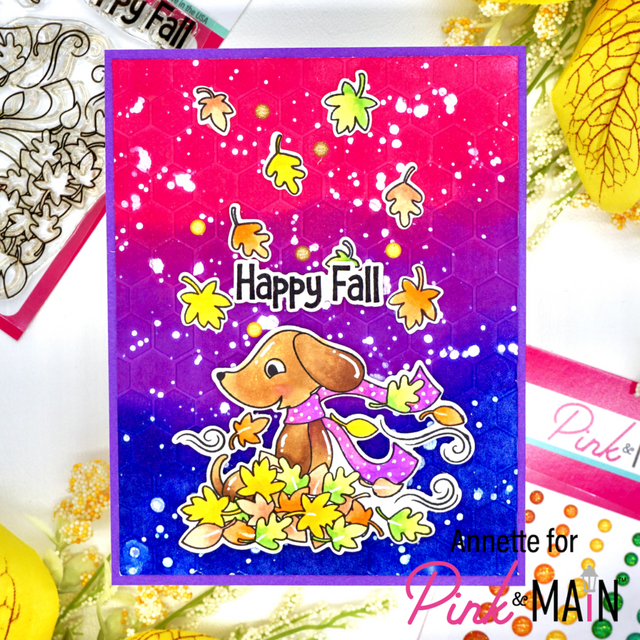 This 3x4 inch stamp set has the August Pup, who is ready for fall! The coordinating dies are included.