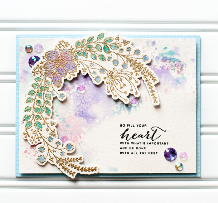 In this seemingly minimalistic die cut set, there is more than meets the eye. Create a wondrous nature accented design by using this partial wreath to highlight the phrases or art that you design. You have the ability to make a 3D effect when you use it as a pop out element of your paper craft as well. Color all the same or use different colors to highlight different flowers. This die set makes a great addition to any die cut collection.