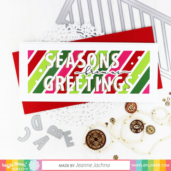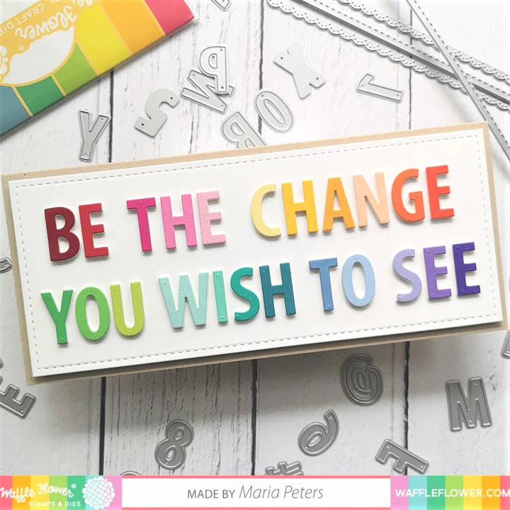 The Bold Alpha Die set makes it easy to add custom wording to your cards, layouts, and party favors! Use them to create a custom card sentiment or scrapbook title. Or dress up party favors and decorations with names or dates. You will find lots of uses for these classic block-style alpha dies!