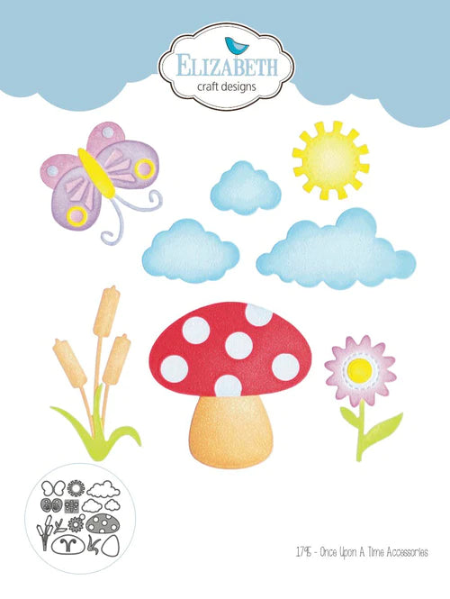 This Elizabeth Craft Designs Die Set is the perfect accessory for your once upon a time creations! With mushrooms, cats tails, butterflies, & more, you'll have all the pieces to make amazing projects! (Who says fairy tales aren't real?!)