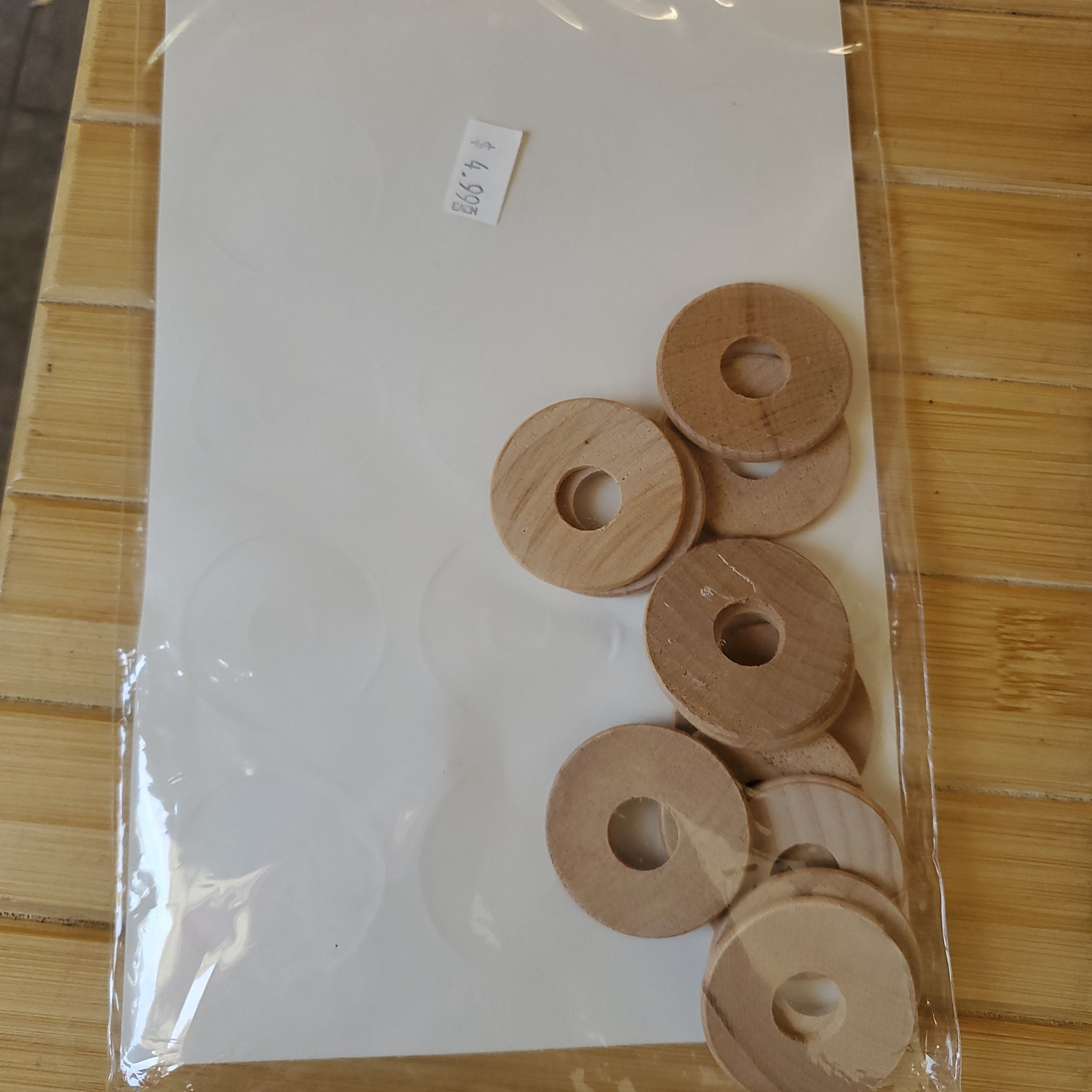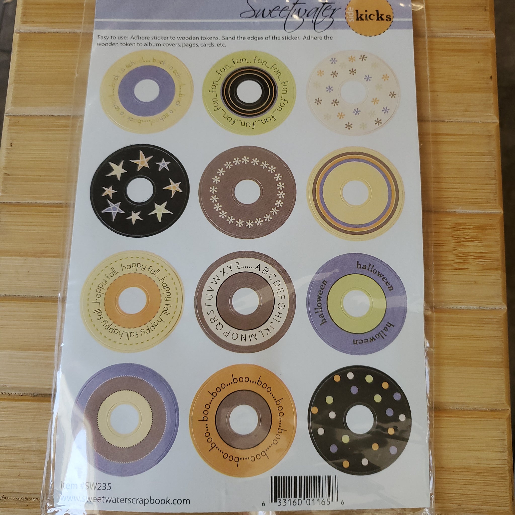 The set includes 12 wooden tokens and 12 stickers to adhere to the tokens. Use them on your album covers, pages, cards, and more.