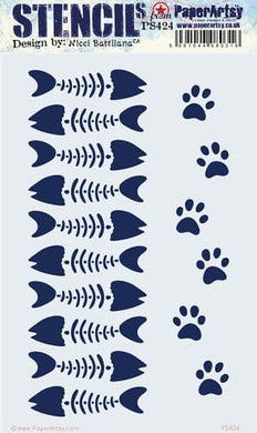 PaperArtsy Stencil Eclectica3 Paw Prints & Fish Bones designed by Nicci Dot (PS424)