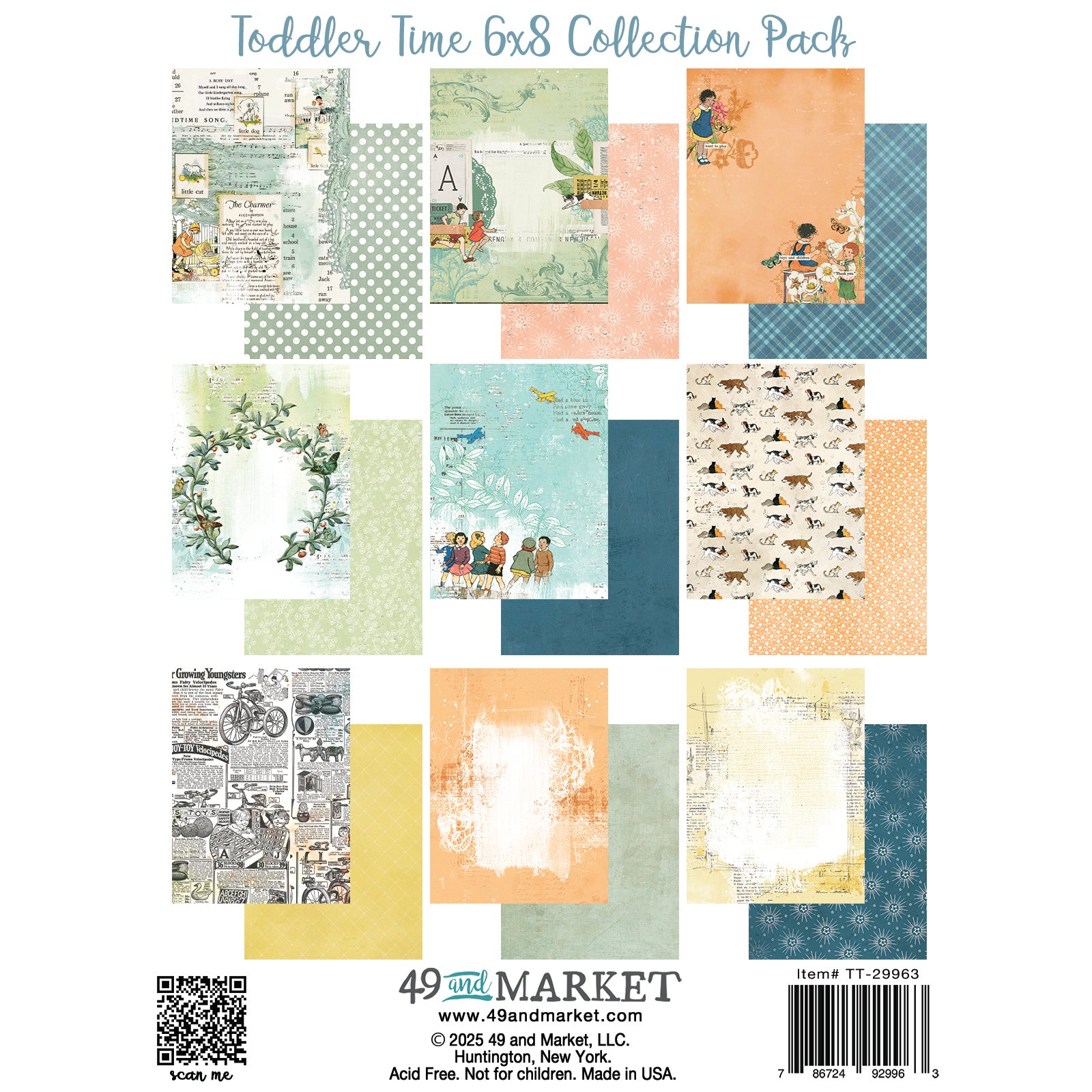Relive the charm of childhood with Toddler Time, a delightful scrapbook paper collection inspired by vintage storybook illustrations like Dick and Jane. Filled with playful imagery, classic colors, and a touch of retro whimsy, these papers will transport you back to simpler times. Perfect for preserving cherished memories of family, friends, and everyday adventures. Pack includes three each of 9 double-sided heavy weight papers.