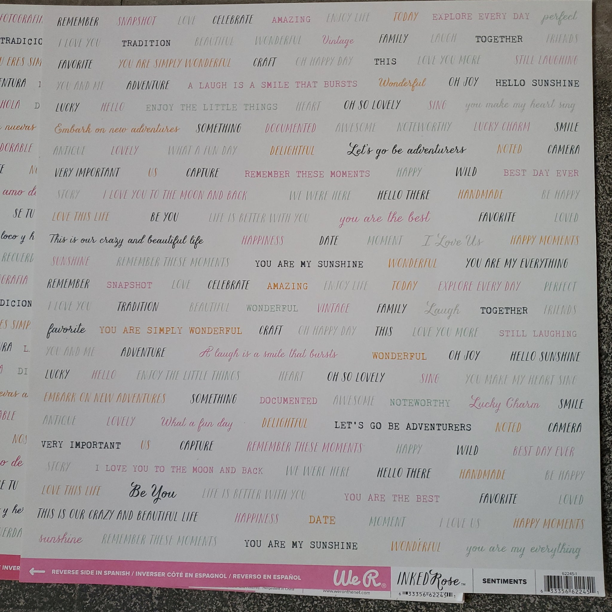 Fall in love with your scrapbooking again with the We R Memory Keepers Inked Rose Collection! This double-sided 12x12 paper comes with a variety of sentiments – one side in English, one side in Spanish – so let your heart (and creativity) speak two languages! ¡Señorita, es hora de scrapbooking!