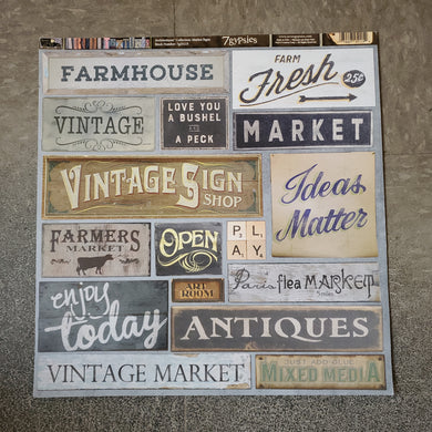 7gypsies Architextures Collection 12x12 Scrapbook Paper Market Signs (7g25115)