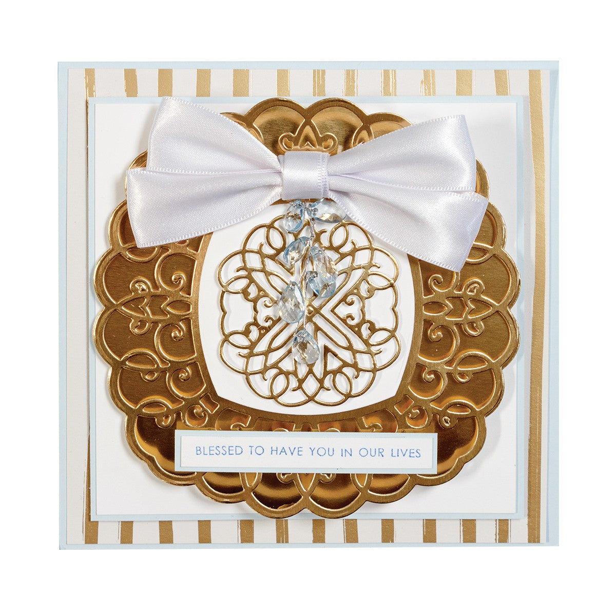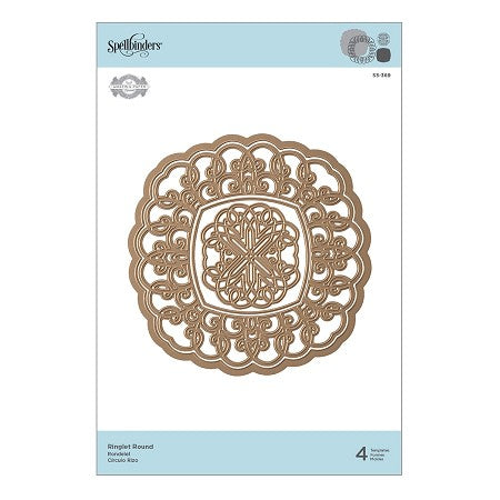 Shapeabilities Ringlet Round Etched Dies Romancing the Swirl Becca Feeken is a set of four dies that includes a frame outline with its coordinating frame pattern and interior frame outline. Nest and cut all three pieces together to create a stunning open frame shape. An accent piece is included in the set.