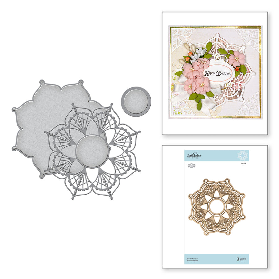 Doily Round Etched Dies Candlewick Classics Collection by Becca Feeken is a set of three dies. The main feature is a beautiful intricate lace doily motif with an outer rim to cut its shape and a small circle die to open the center. The Candlewick Classics Collection is a perfect addition to the Candlewick Sampler Collection by Becca Feeken. Mix and match between the two for an amazing collaboration! The inspiration comes from the Candlewick embroidery design, a type of elegant white-on-white embroidery with its hints of dotted motifs and knots. Add them to your etched die collection!