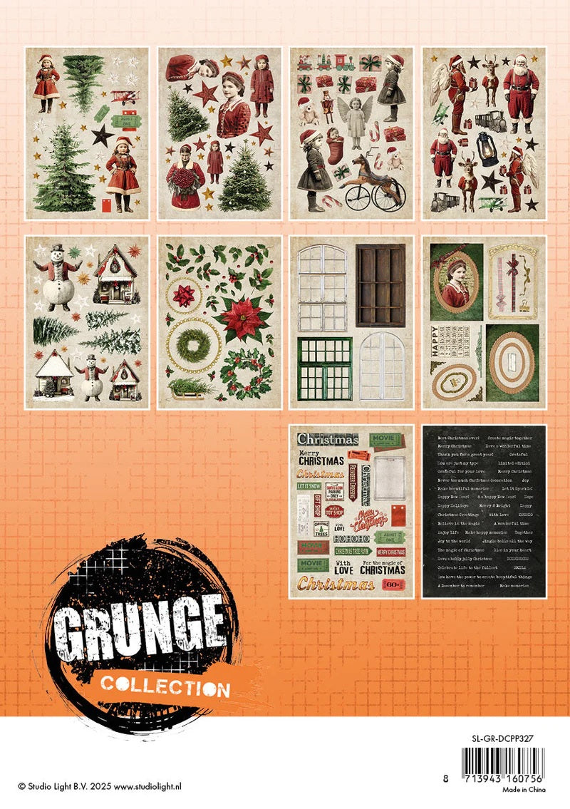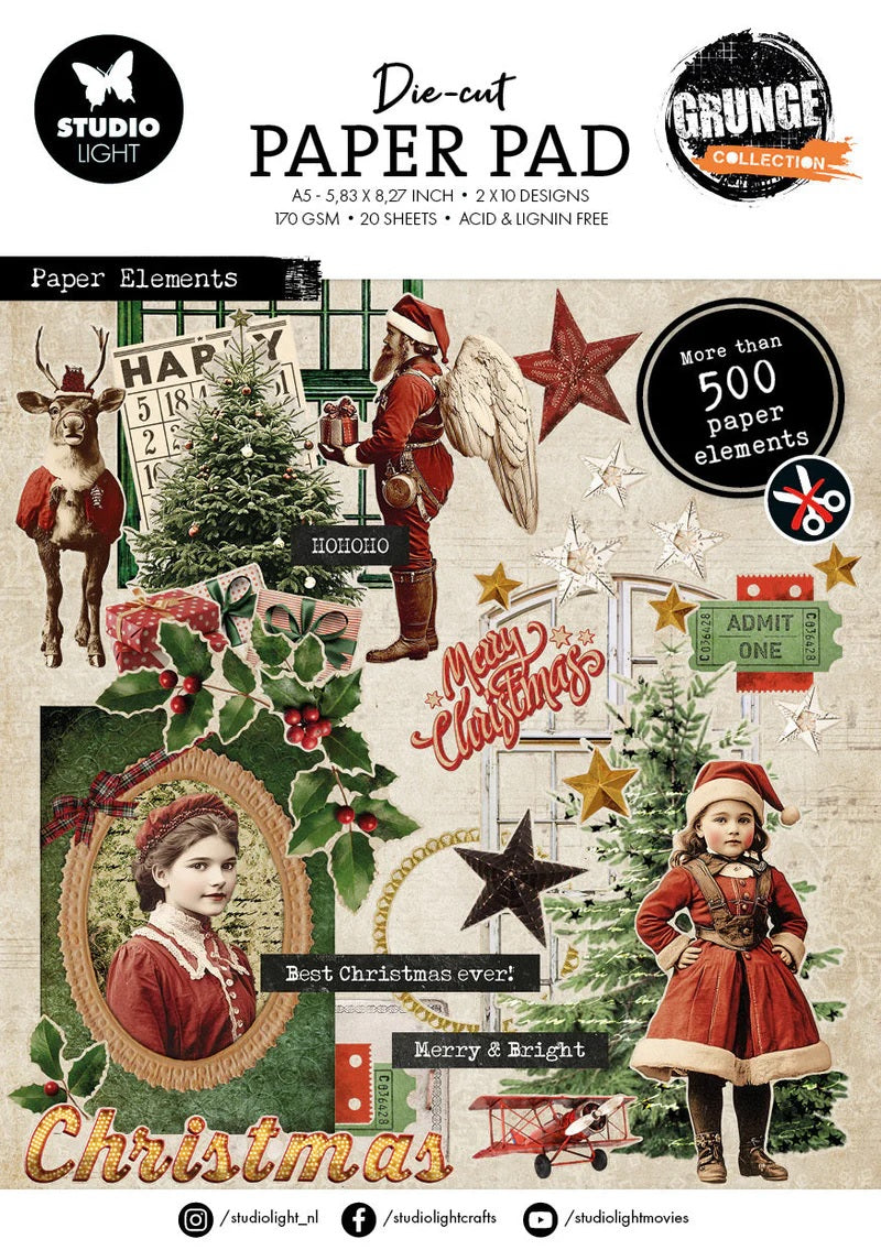 SL Designer Paper Pad Paper Elements Grunge Collection 20 Sheets Combine the warmth of Christmas with a rugged, distressed look. This collection adds a unique, artistic touch to your holiday projects! This handy book of die cut elements includes 20 sheets with over 500 precut paper elements printed on heavyweight cardstock 170gsm, acid free. They can be used for scrapbooking, mixed media, journaling and card making. Part of the Grunge Collection Collection. Perfect for Christmas themed projects 5.8 x 8.3 inches 20 sheets of die cut elements 170 gsm acid free paper
