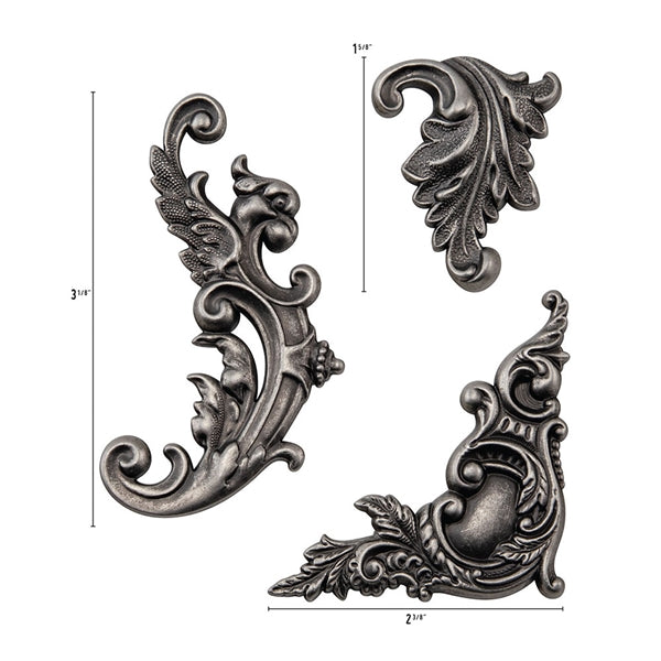 Whether you're creating mixed media art or a vignette box, the sophisticating detail of Tim Holtz Adornments Flourish will take your project from ordinary to extraordinary. The charms range in size from 1.625 to 3 inches in length. These flat-backed, metal frames are the perfect adornment to any card, invitation, scrapbook page or altered art piece.